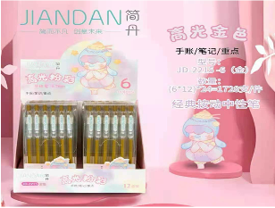 JD-2215-6-D(Caja-288)PLUMA DE GEL DORADO 6 PLUMAS