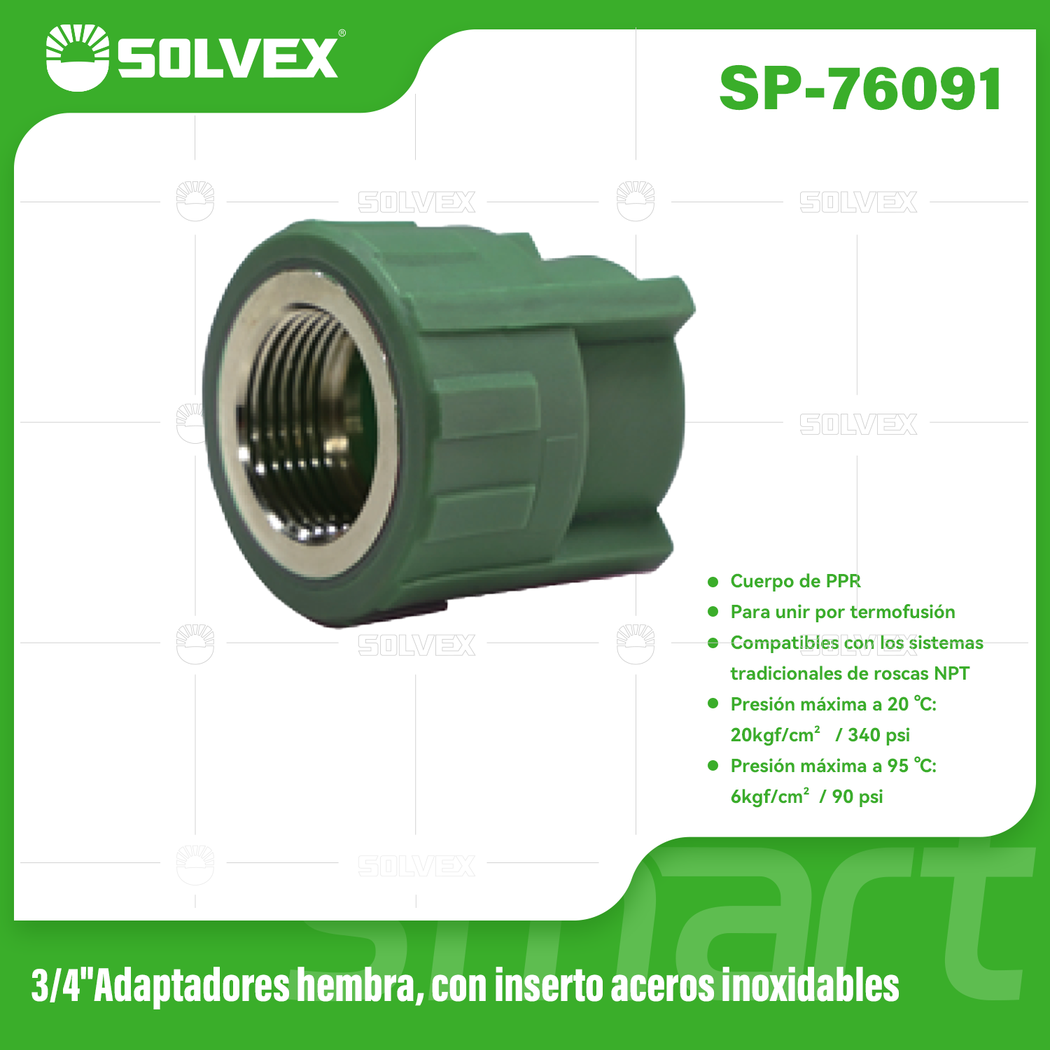 SP-76091 (Caja master 200)(MOQ 10pzs=1bolsa) 3/4"Adaptadores hembra, con inserto aceros inoxidables