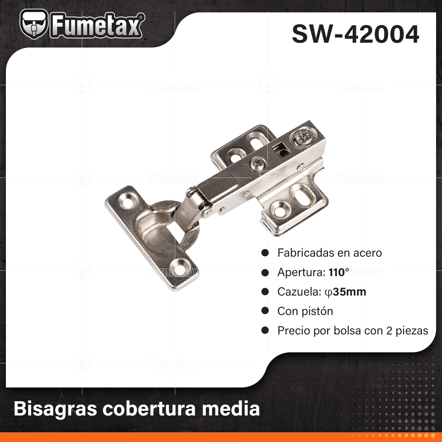 SW-42004 (Caja master 200)(MOQ 2pzs=1bolsa) Bisagras cobertura media